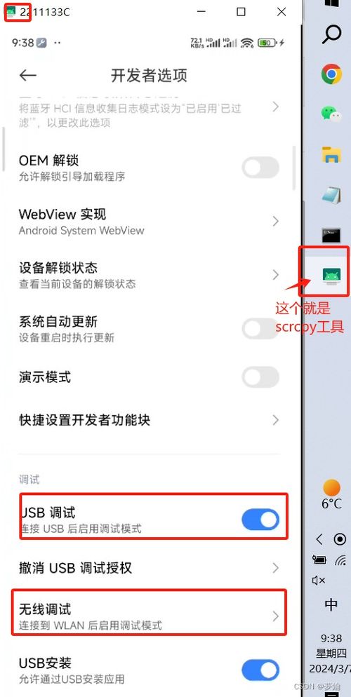 3. 开启USB调试:在开发者模式中,找到“USB调试”选项,开启它。