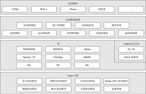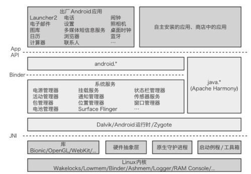 通过以上五个层次,安卓系统构建了一个庞大而复杂的生态系统。每个层次都发挥着重要作用,共同保证了安卓系统的稳定性和流畅性。